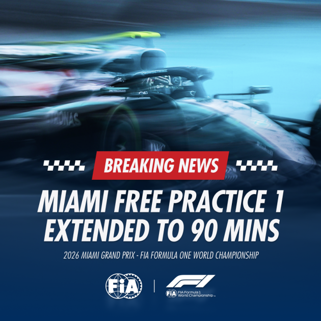 Miami Grand Prix Free Practice 1 extended to 90 mins