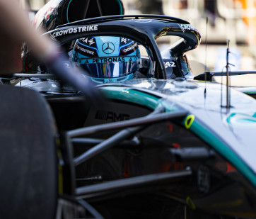 Mercedes’ Gorge Russell set the fastest lap of the single practice session available to teams as...