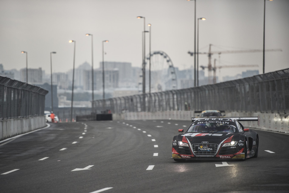 Despite overcast conditions for the final qualifying session of the 2014 Blancpain Sprint Series season, the track remained dry throughout. Nevertheless, a couple of drivers were caught out by the slippery conditions around the Baku street circuit. Vincent Abril (#4 Belgian Audi Club Team WRT Audi), Marc Basseng (#5 Phoenix Racing Audi) and Benjamin Hetherington (#63 Fortec Mercedes) all hit the concrete walls very hard, fortunately without any bodily harm. For Marc Basseng, who set the quickest time in the Pro-Am Trophy before making contact with the wall, the event might well be over, as the damage to his car could well be terminal.