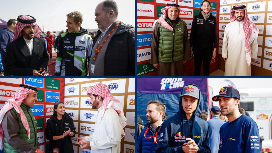 FIA President Mohammed ben Sulayem and Robert Reid, FIA Deputy President for Sport, were greeted by His Royal Highness Prince Khalid bin Sultan Al-Abdullah Al-Faisal, Chairman of the Saudi Automobile and Motorcycle Federation (SAMF), when they arrived for a rest day visit in Riyadh. The duo took a tour of the bivouac and met many of the leading crews, some of the younger competitors and female entrants.