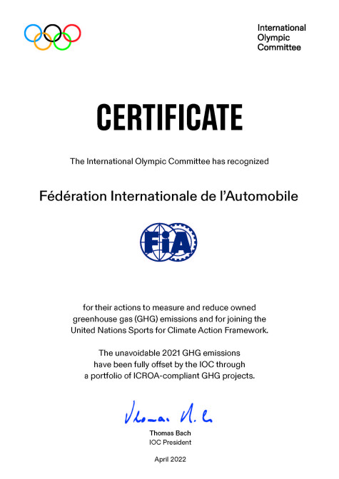 Mohammed Ben Sulayem, FIA President said: “The FIA is honoured to be selected among the winners of the IOC Carbon Action Awards that highlight our carbon reduction plan aiming at reducing our carbon emissions by 50 per cent by 2030, in line with the Paris Agreement. This award also recognizes our environmental management system certified according to ISO 14001:2015 standard in 2021. We plan to go further with new ambitious targets to strengthen our climate leadership in sport and taking motor sport and mobility into a low carbon future.”