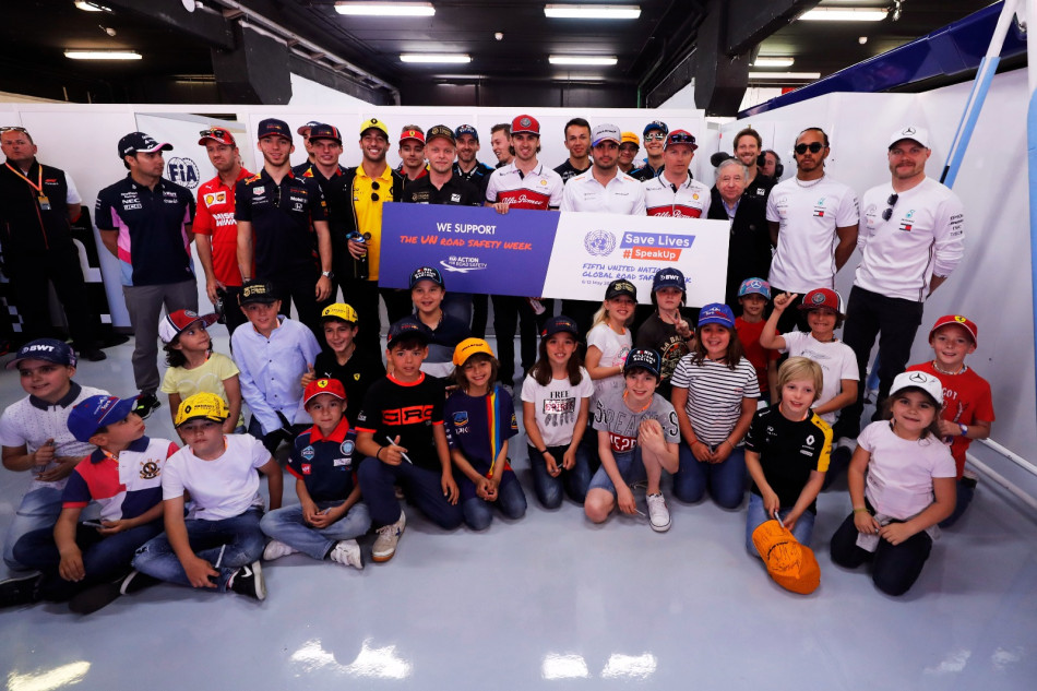 A strong advocate for the promotion of the FIA’s messages on road safety, the motor sport community supported the fifth United Nations Global Road Safety Week as FIA Formula One drivers competing in the Spanish Grand Prix gathered for a family photo before the start of the race in Barcelona. Earlier this week, they had already acted as ambassadors for road safety with the release of the “F1 Drivers Advocate for Road Safety” video shedding light on some of the key FIA’s Golden Rules for Road Safety.