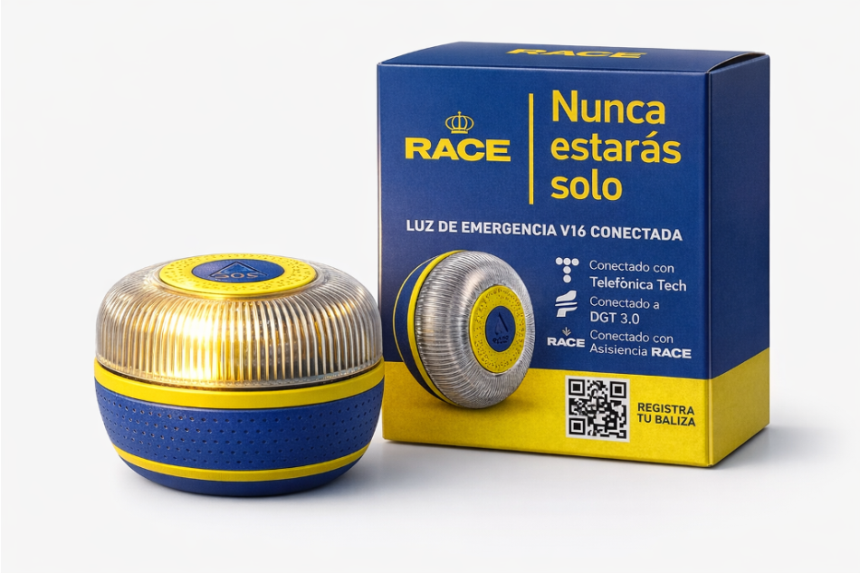 RACE Connected Safety Light is a smart, connected, user‑centric road‑safety solution that transforms roadside emergency management. With a simple gesture, the driver activates a light beacon that automatically geolocates the vehicle and connects the user to RACE, without having to leave the car. It is a technological innovation project that improves road safety and customer experience, generating value for motorists and positioning the Club as a benchmark in safe and connected mobility.